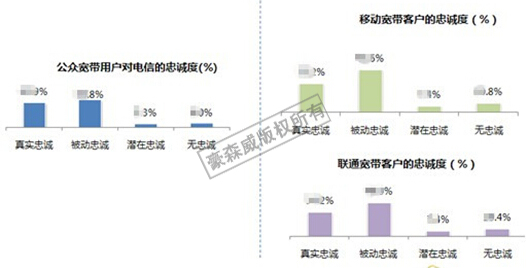 從江蘇電信觸點與同行業(yè)對比分析看,手機網(wǎng)絡質(zhì)量、3G上網(wǎng)質(zhì)量、寬帶網(wǎng)絡質(zhì)量排名第一,優(yōu)勢明顯,但與移動對比,大多數(shù)觸點得分低于移動;與聯(lián)通對比,大多數(shù)觸點得分高于聯(lián)通。不過在忠誠度上,電信寬帶客戶的真實忠誠比例遠高于移動和聯(lián)通。 (豪森威觀點:即便是在競爭相對較少的市場中,為客戶提供非凡的價值也是讓客戶持久保持滿意和忠誠的唯一可靠方法。)