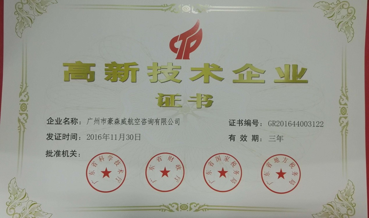 根據(jù)《高新技術(shù)企業(yè)認定管理辦法》(國科發(fā)火〔2016〕32號)和《高新技術(shù)企業(yè)認定管理工作指引》(國科發(fā)火〔2016〕195號)有關規(guī)定,廣州市豪森威航空咨詢有限公司經(jīng)企業(yè)申報、專家審評、公示等程序,于2016年11月30日進入廣東省2016年第一批認定高新技術(shù)企業(yè)名單。